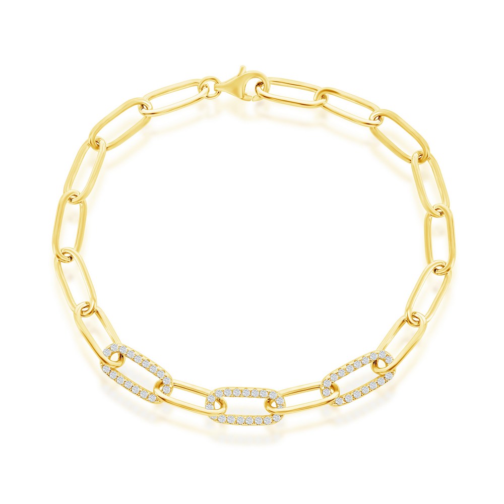 Sterling Silver, CZ Paperclip Bracelet – Gold Plated