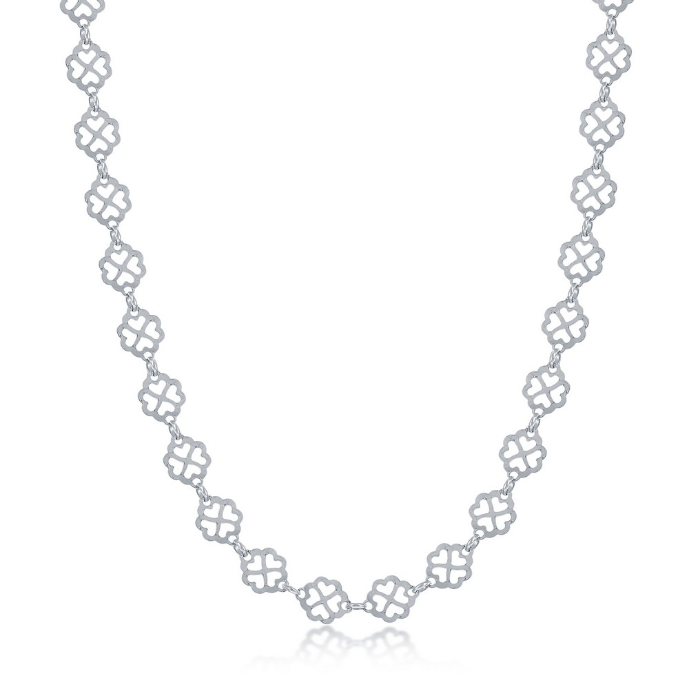 Sterling Silver Diamond-Cut Flowers w/Heart Cut-Outs Bracelet