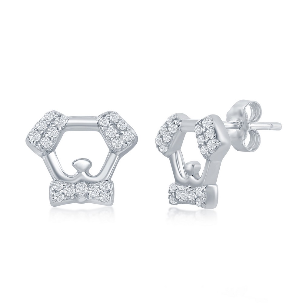 Sterling Silver Dog CZ Stud Earrings