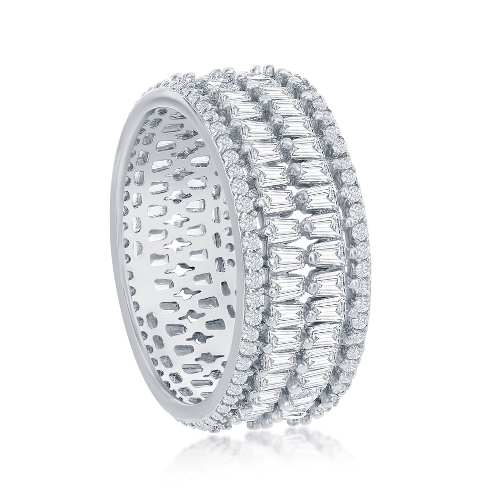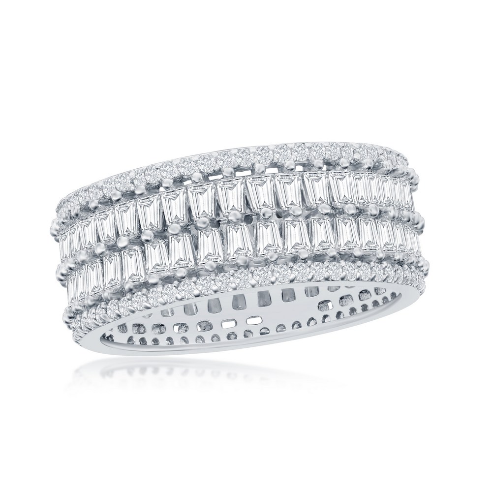 Sterling Silver Double Row Baguette & Round CZ Eternity Ring