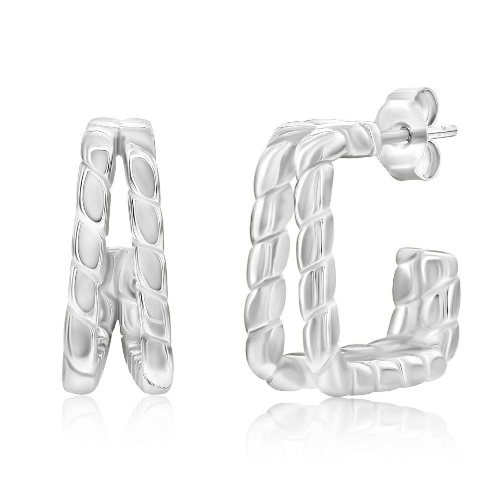 Sterling Silver, Double Row Square Lined Earrings