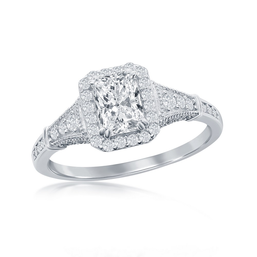 Sterling Silver Emerald-Cut CZ Vintage Inspired Engagement Ring