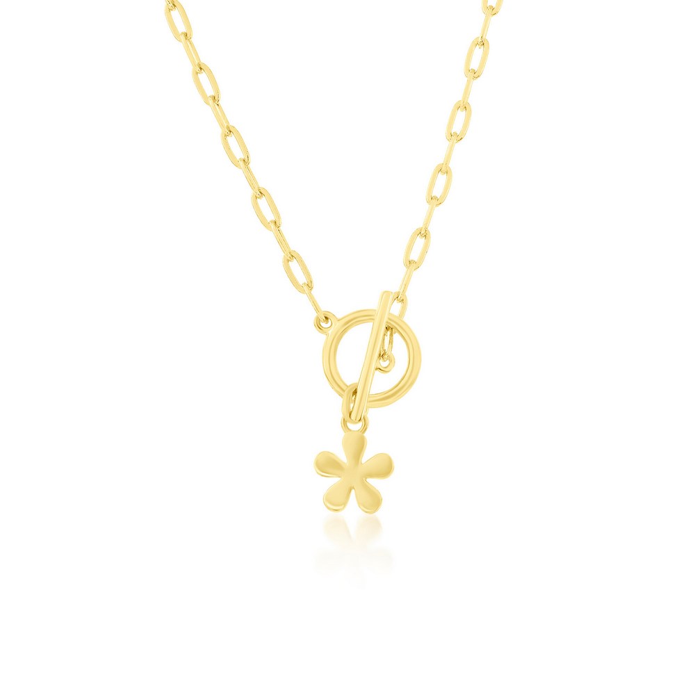 Sterling Silver Flower Charm Paperclip Toggle Necklace – Gold Plated