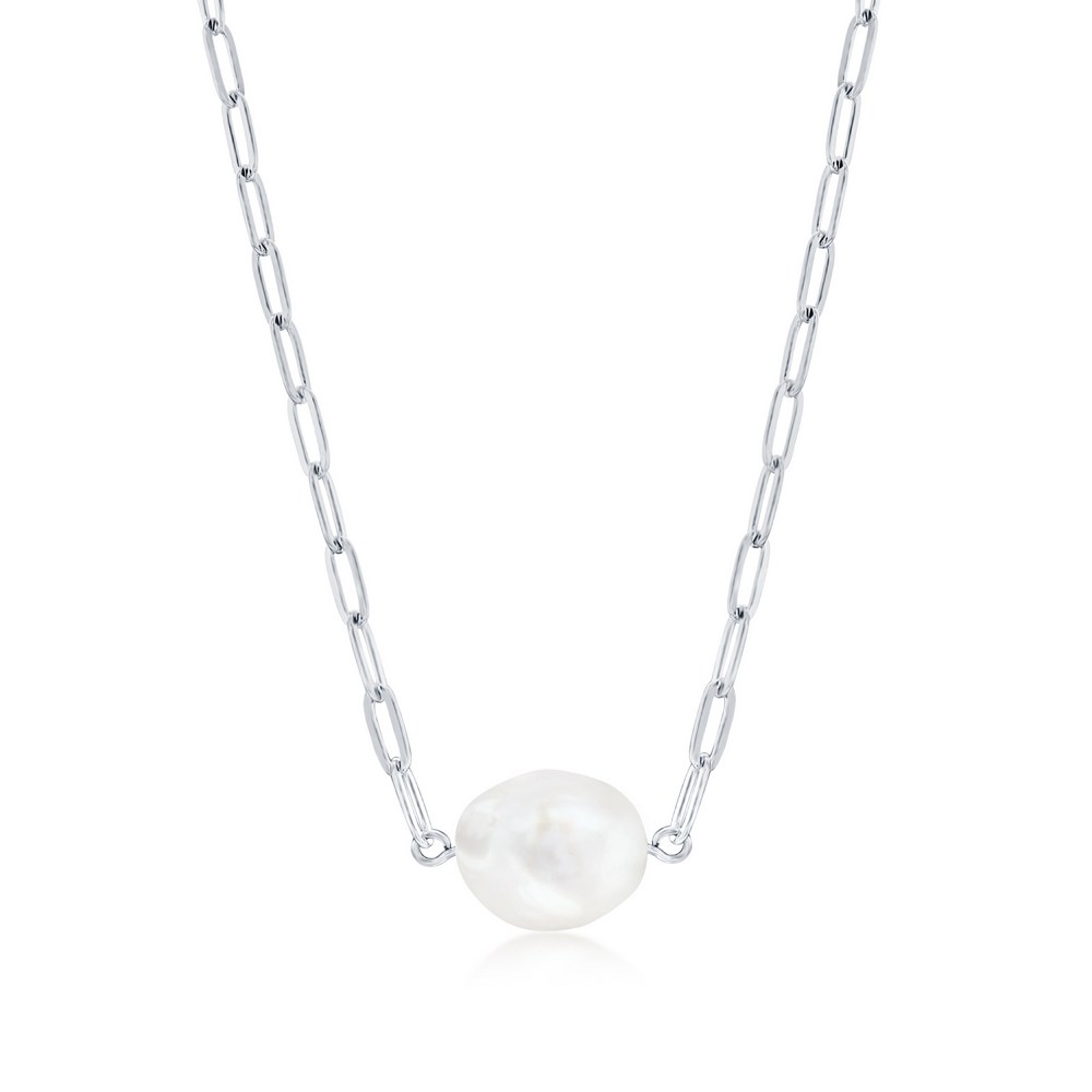 Sterling Silver Freshwater Pearl Paperclip Necklace
