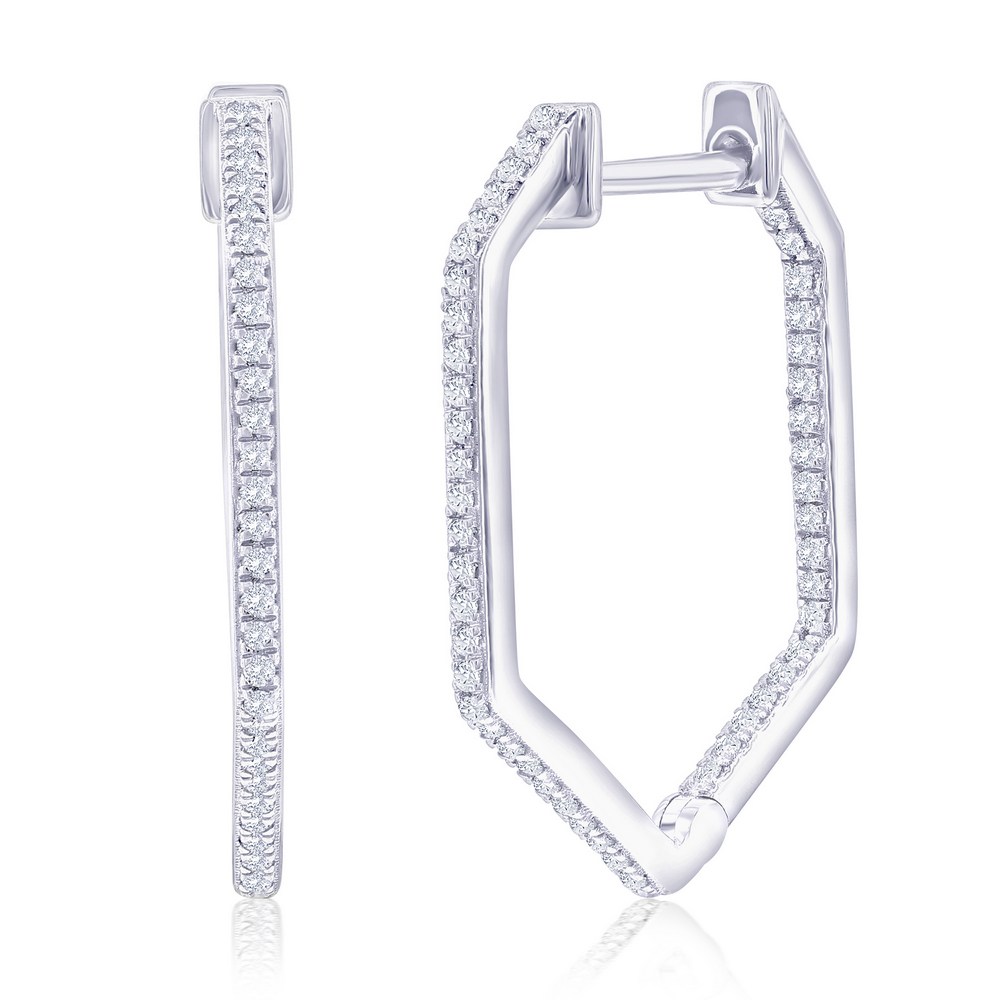 Sterling Silver, Geometric Diamond Hoop Earrings – (94 Stones)