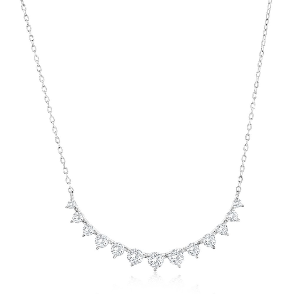 Sterling Silver, Graduating 3-Prong Curved Bar CZ Necklace
