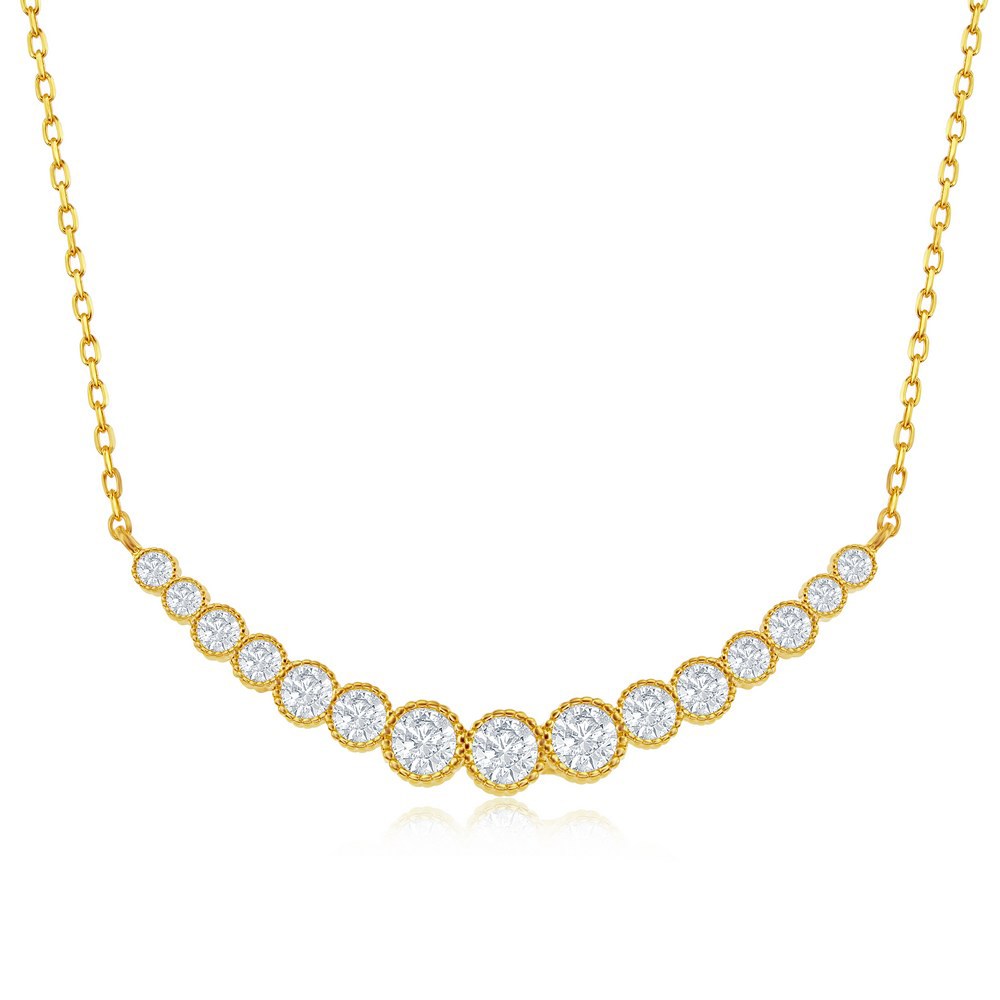 Sterling Silver Graduating Round CZ Curved Bar Necklace – Gold Plating