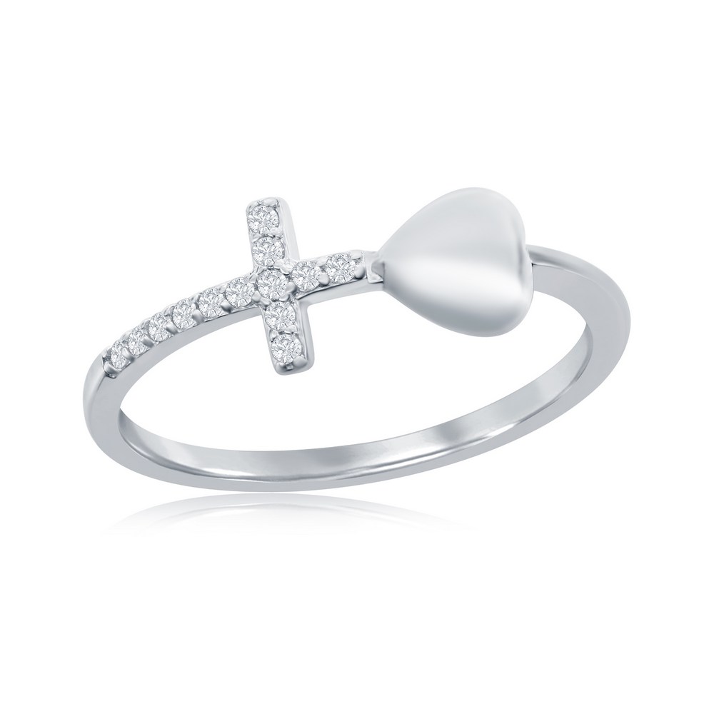 Sterling Silver Heart and CZ Cross Ring