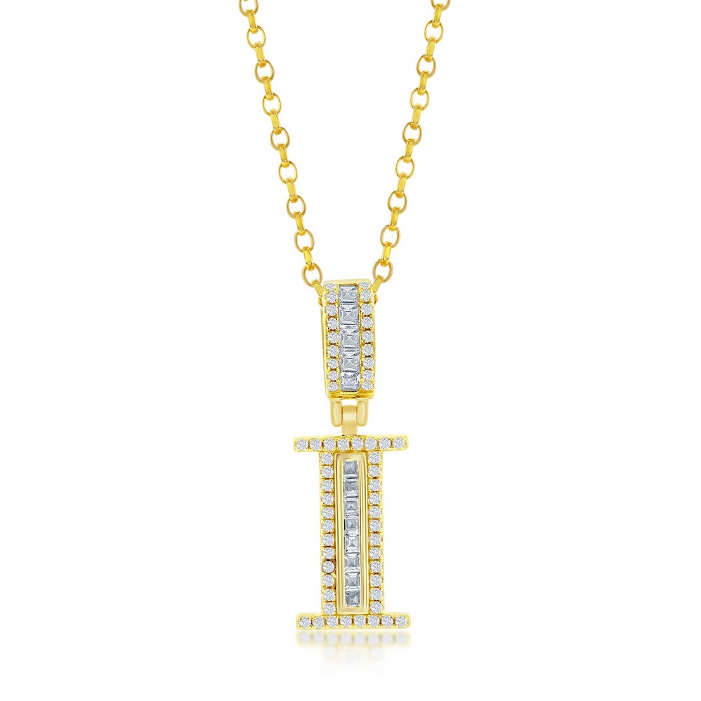 Sterling Silver ‘I’ Baguette CZ Initial Pendant w/Chain – Gold Plated