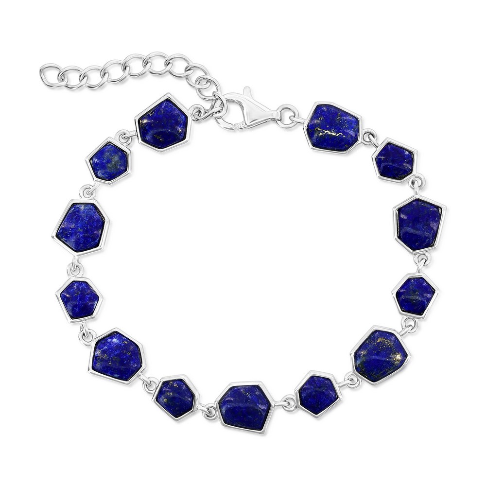 Sterling Silver, Irregular Shaped Link Bracelet – Lapis