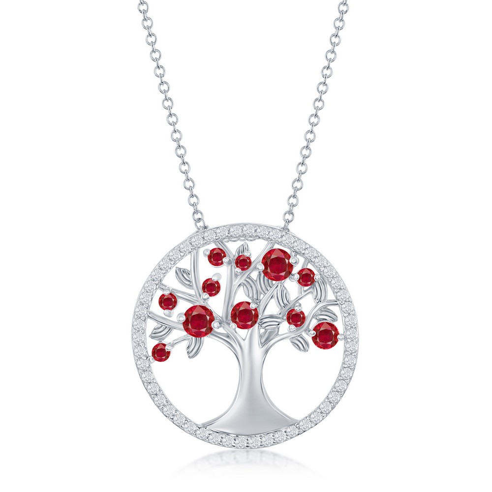 Sterling Silver, ‘January’ Birthstone Tree of Life Necklace – Garnet CZ