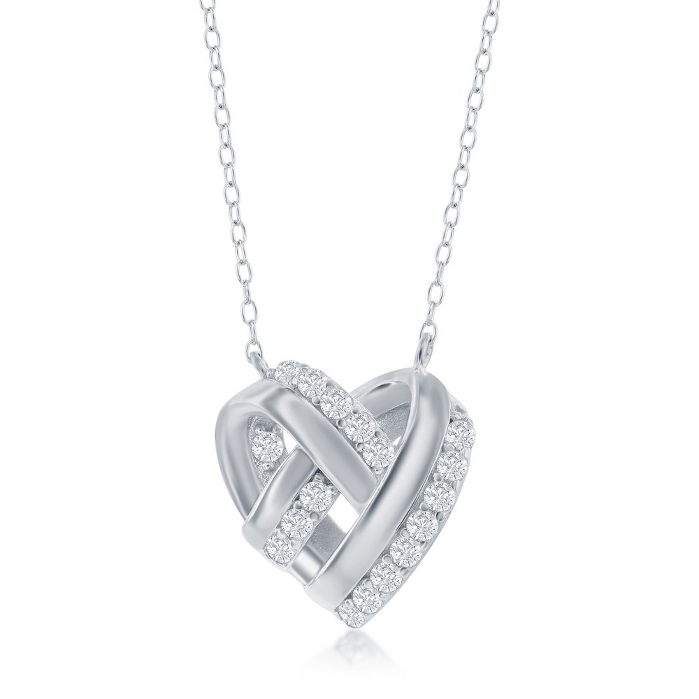 Sterling Silver Kotted Heart CZ Necklace