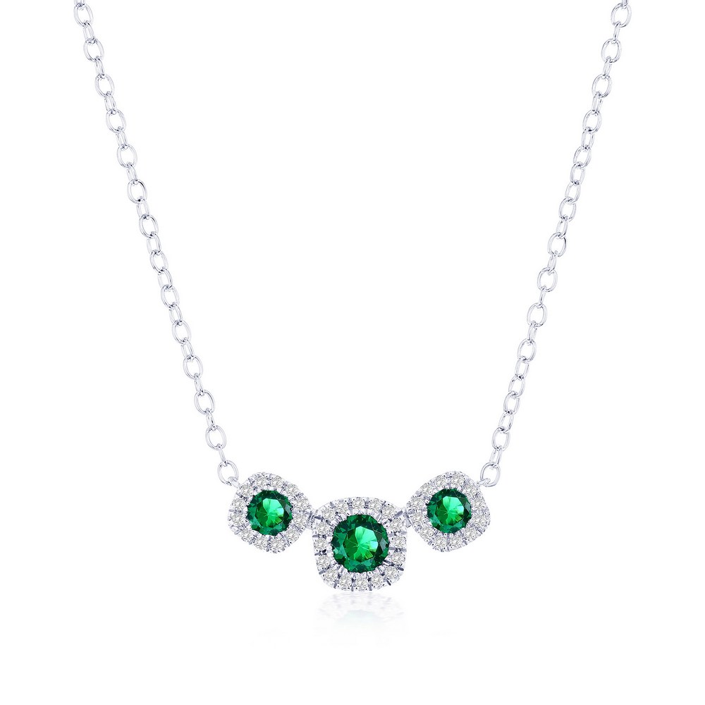 Sterling Silver, Lab-Grown 0.28ct Emerald & 0.07ct Natural Diamond Necklace – (43 Stones)