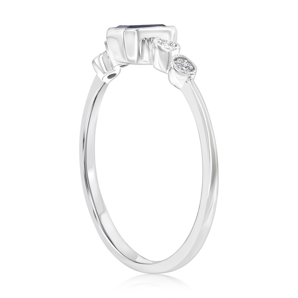 Sterling Silver, Lab-Grown 0.31ct Sapphire & 0.03 Natural Diamond Ring – (17 Stones)