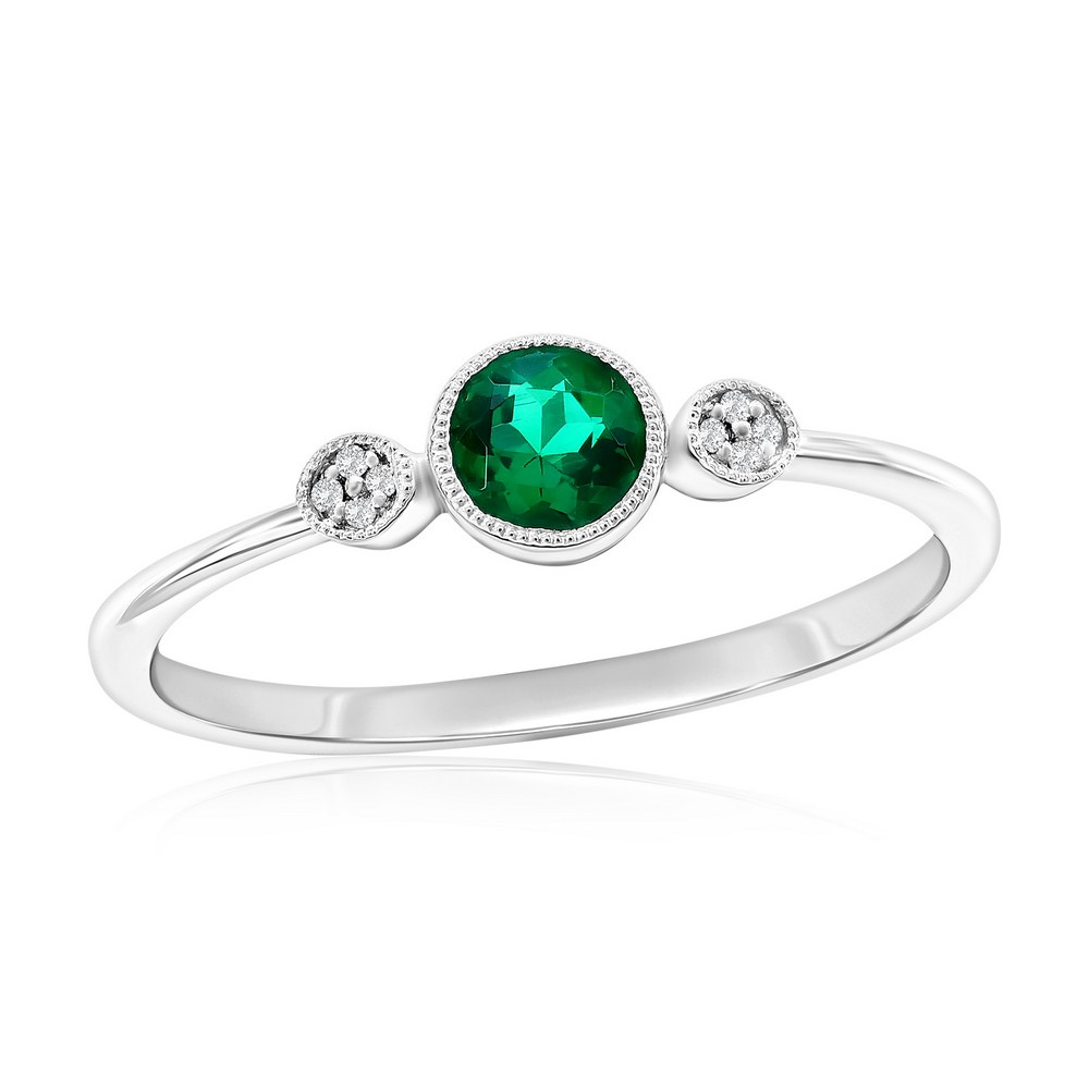 Sterling Silver, Lab-Grown Emerald & Natural Diamond Ring – (9 Stones)