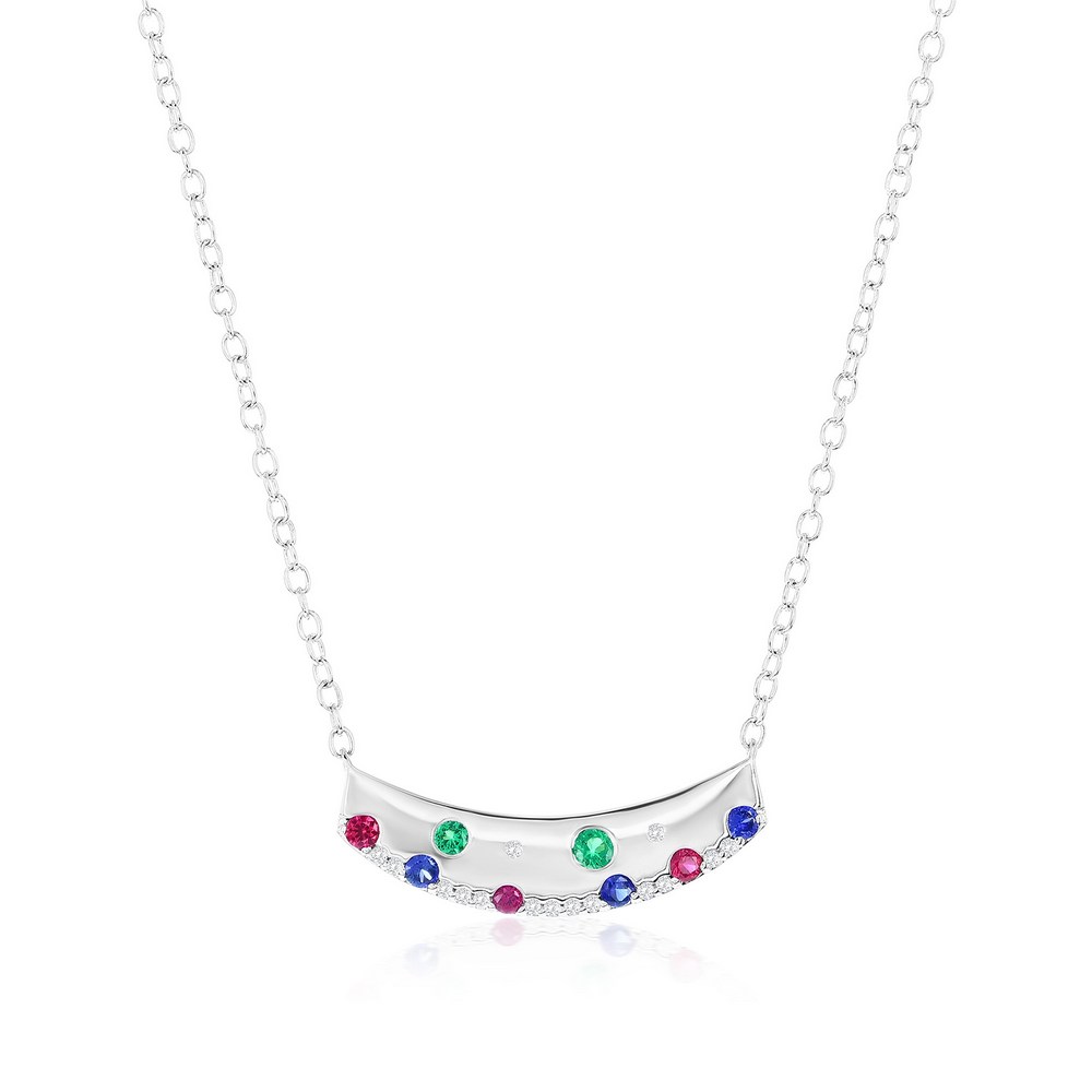Sterling Silver, Lab-Grown Gem & Natural Diamond Curved Bar Necklace – (23 Stones)