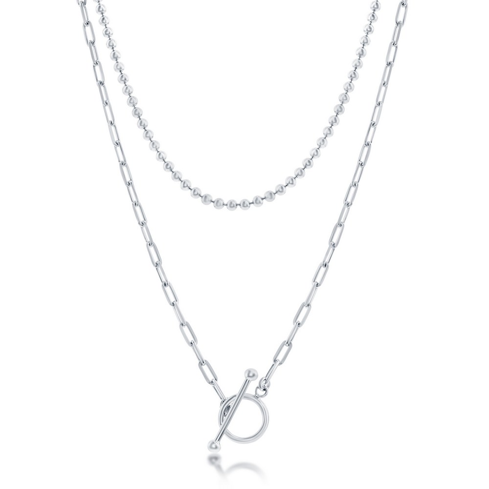 Sterling Silver Layered Paperclip and Beaded Chain Toggle Necklace