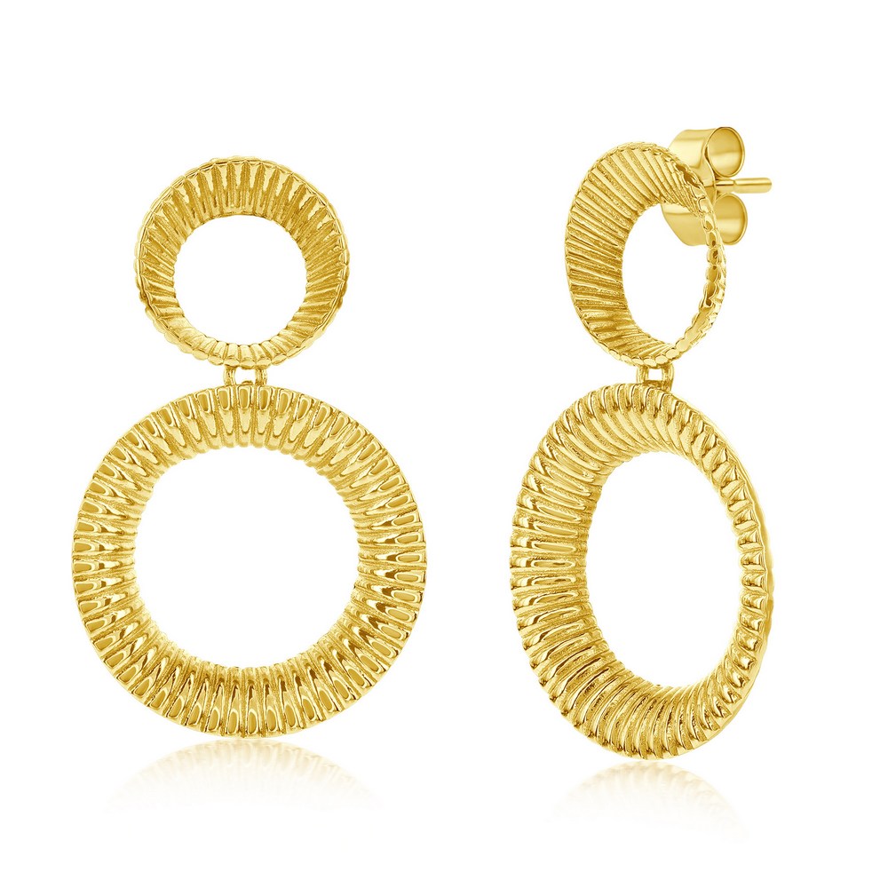 Sterling Silver Lined Double Round Dangle Earrings – Gold Plated
