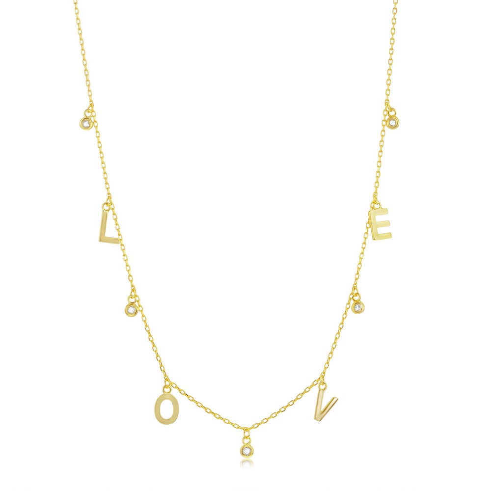 Sterling Silver ‘LOVE’ & CZ Charms Necklace – Gold Plated