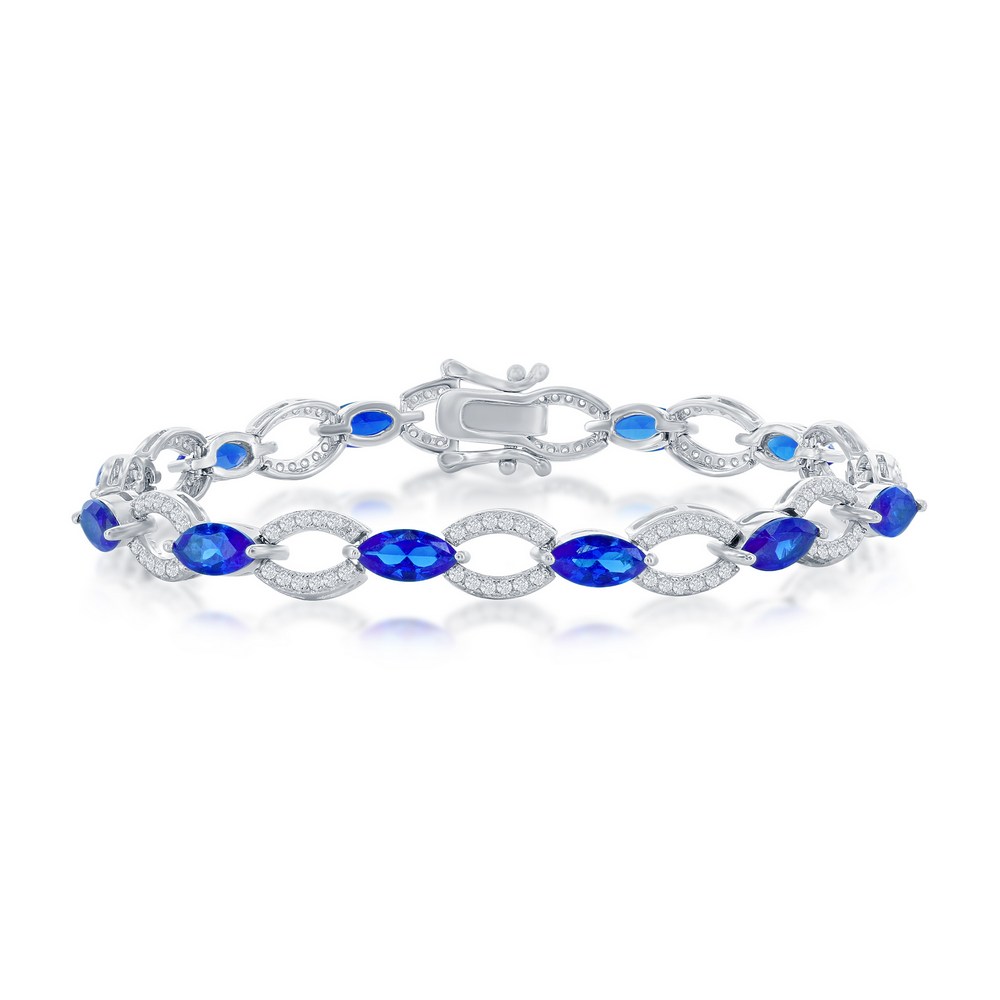 Sterling Silver Marquise & Oval Linked Bracelet – Sapphire CZ