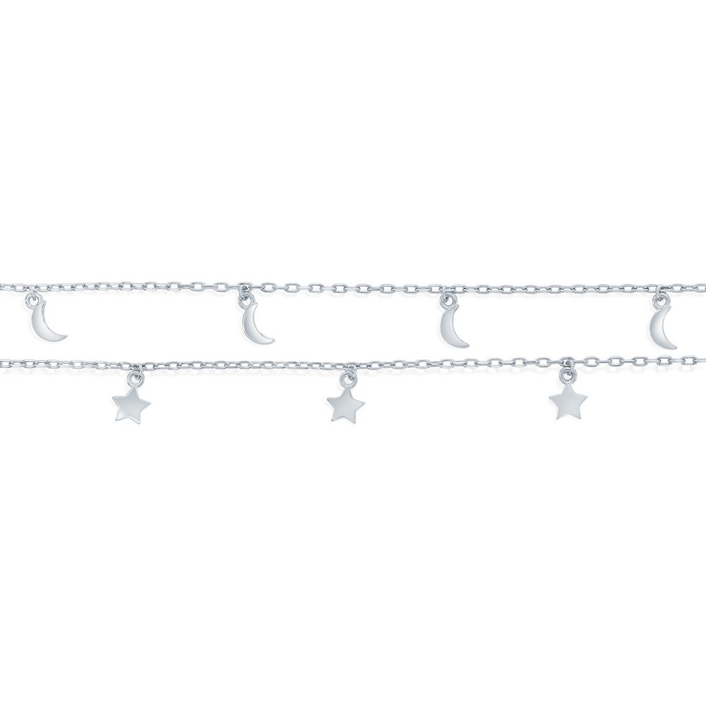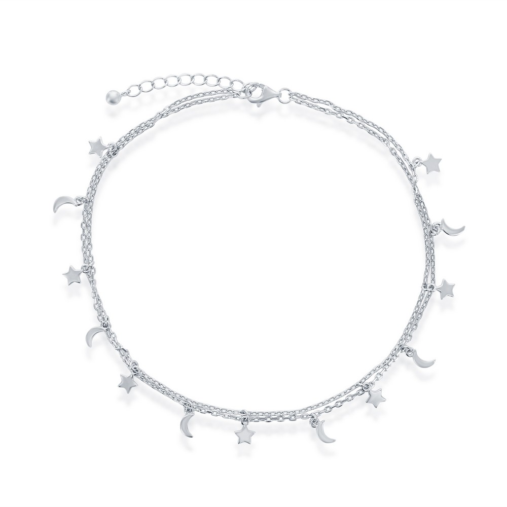 Sterling Silver, Moon and Star Double Strand Anklet