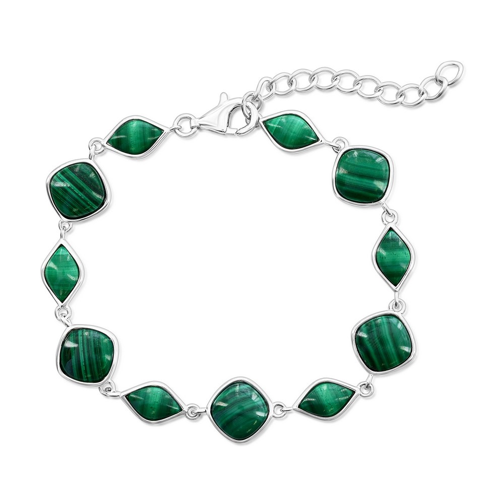 Sterling Silver, Multi-Shaped Link Bracelet – Malachite