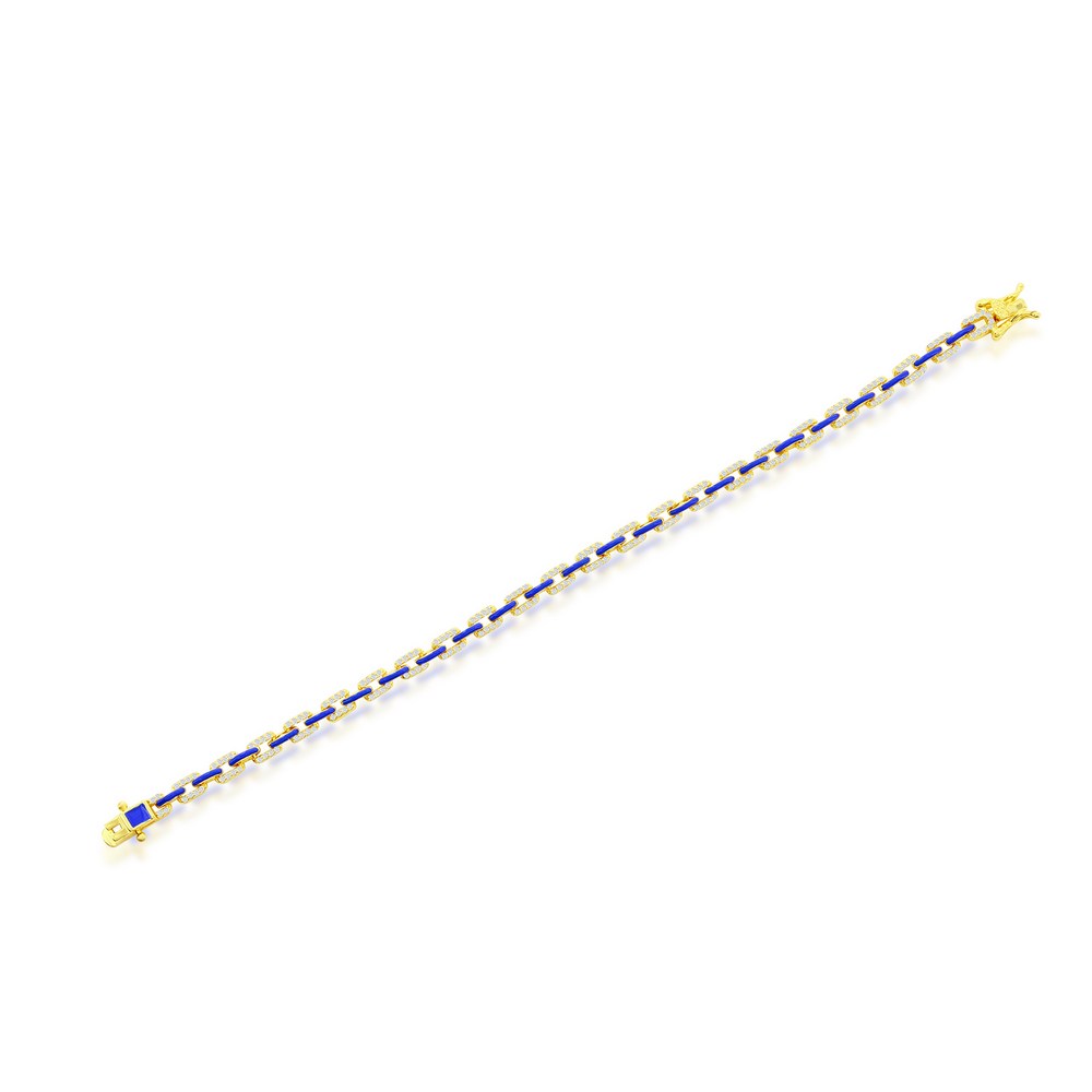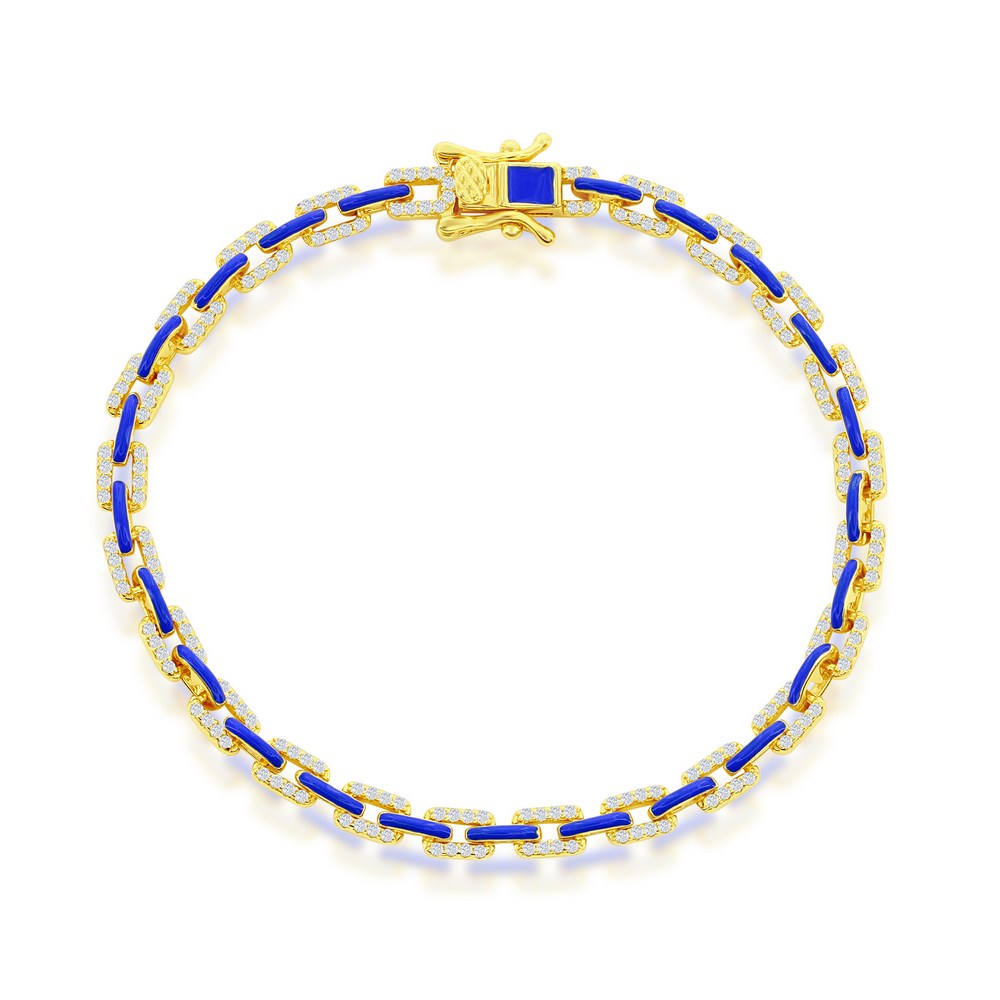 Sterling Silver Navy Enamel & CZ Paperclip Bracelet – Gold Plated