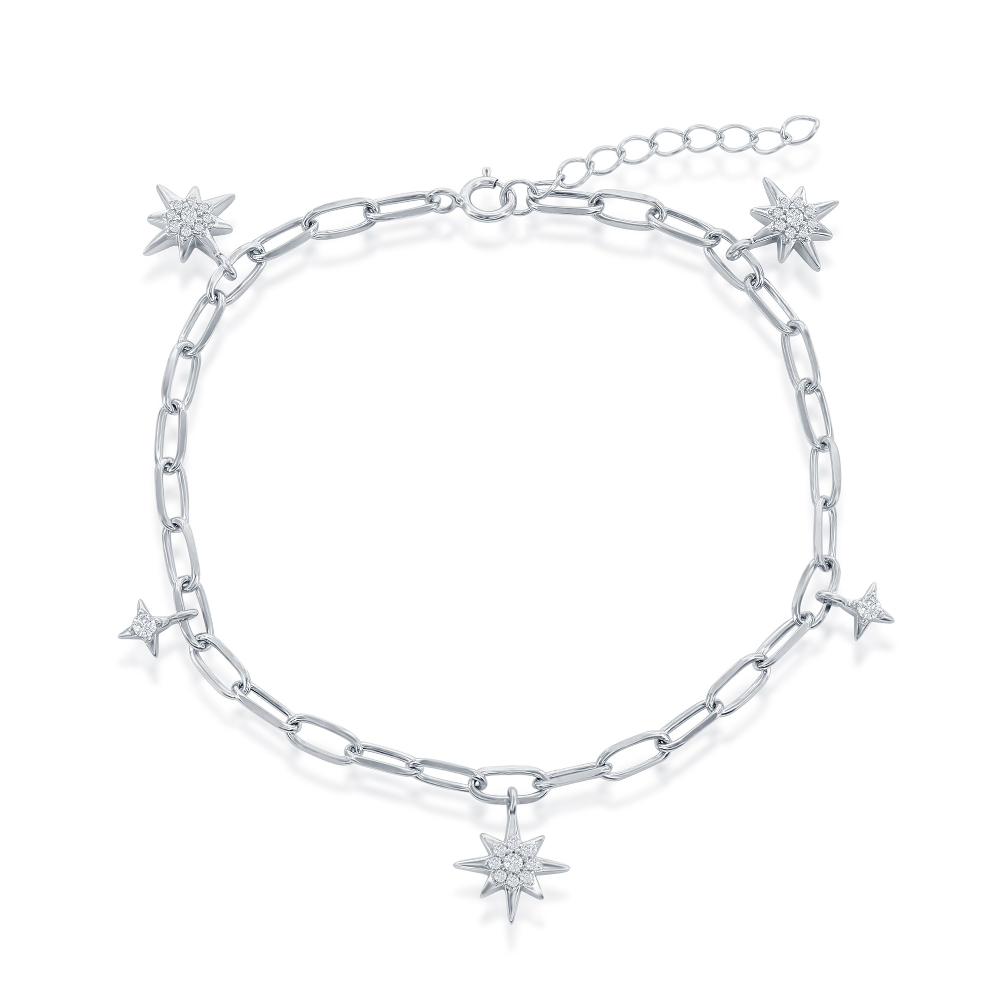 Sterling Silver North Star CZ Paperclip Bracelet