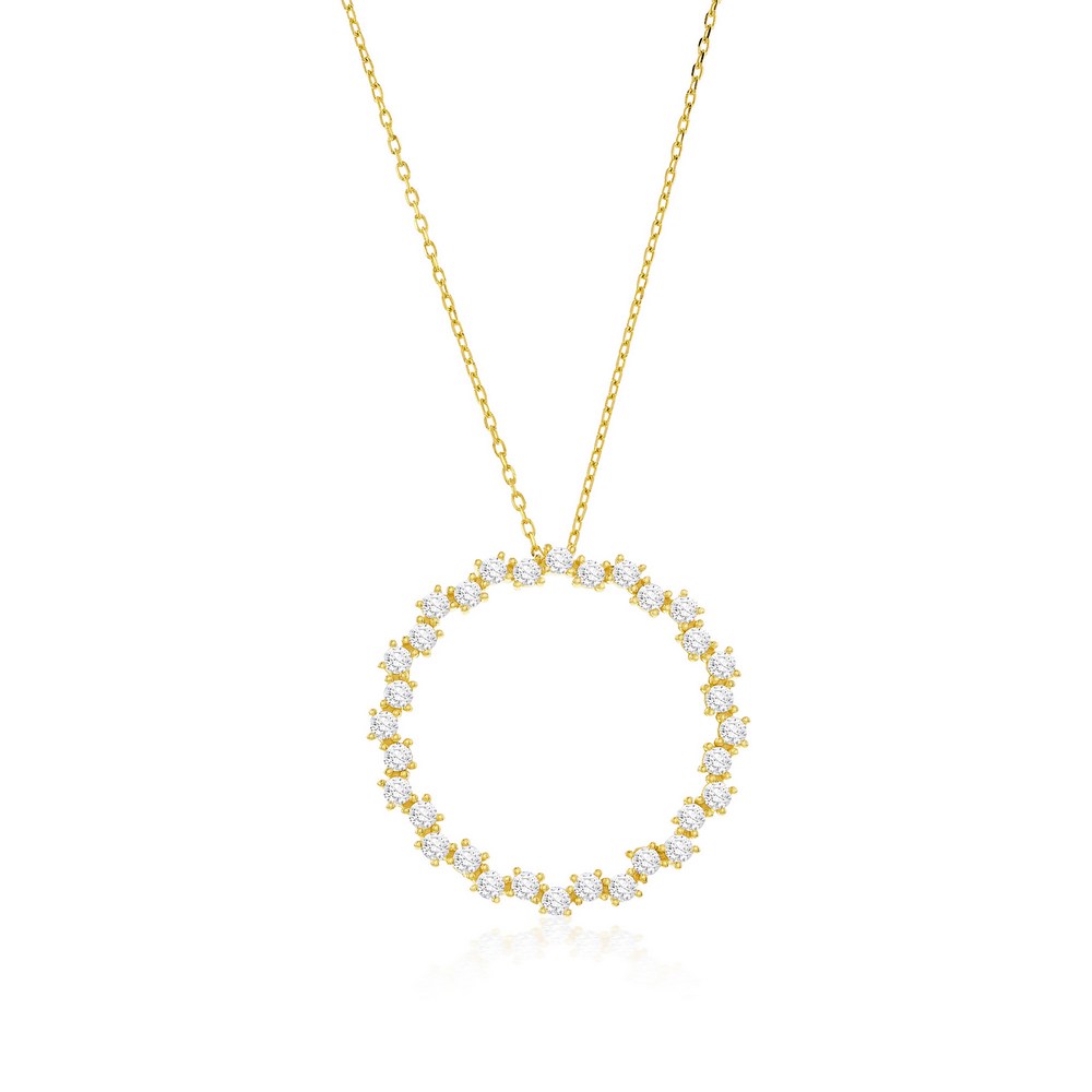 Sterling Silver, Open Circle CZ Necklace – Gold Plated