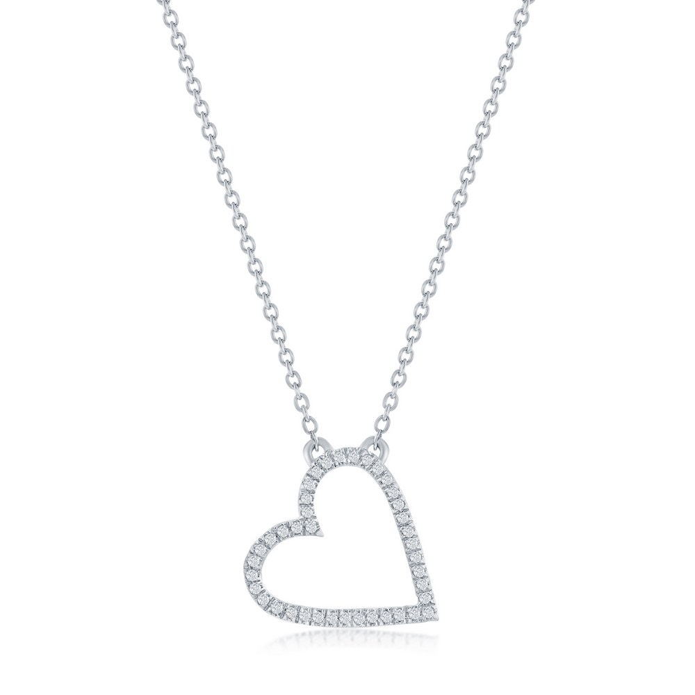 Sterling Silver, Open Heart Diamond Necklace – (40 Stones)