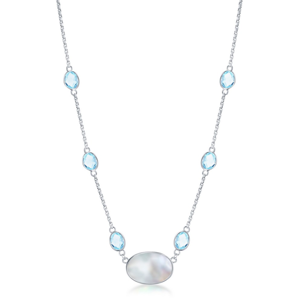 Sterling Silver Oval Mother of Pearl & Round Blue Topaz by the Yard Necklace