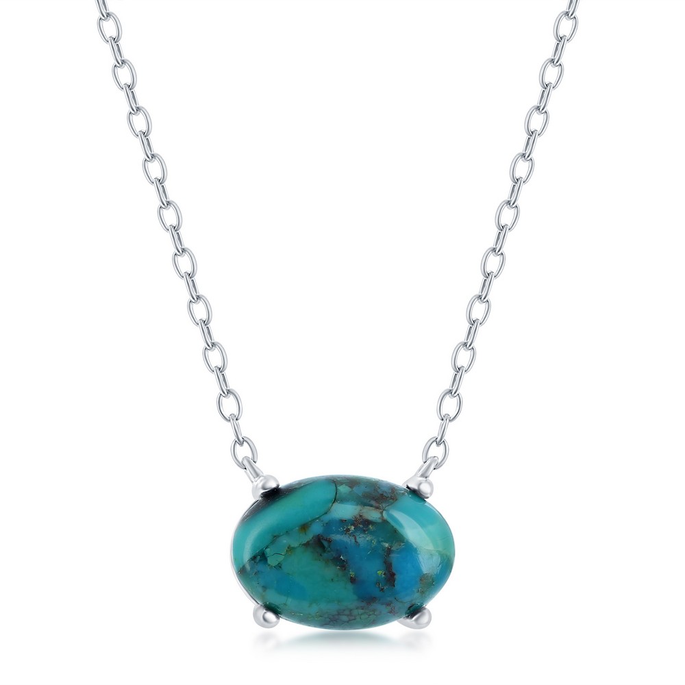 Sterling Silver, Oval Reconstituted Turquoise Necklace