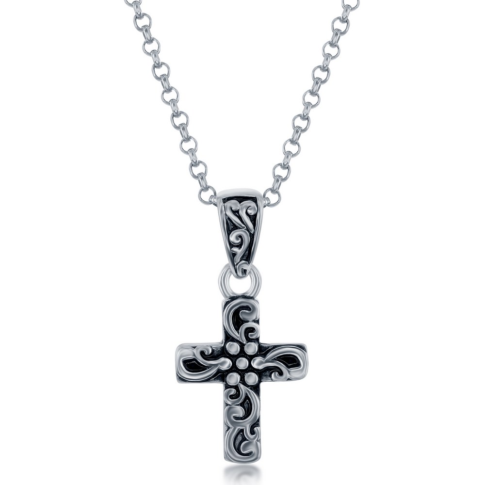 Sterling Silver Oxidized Cross Pendant w/Chain