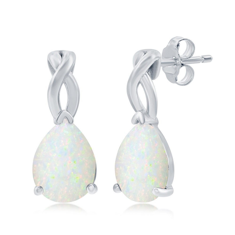 Sterling Silver, Pear-Shaped White Opal Earrings