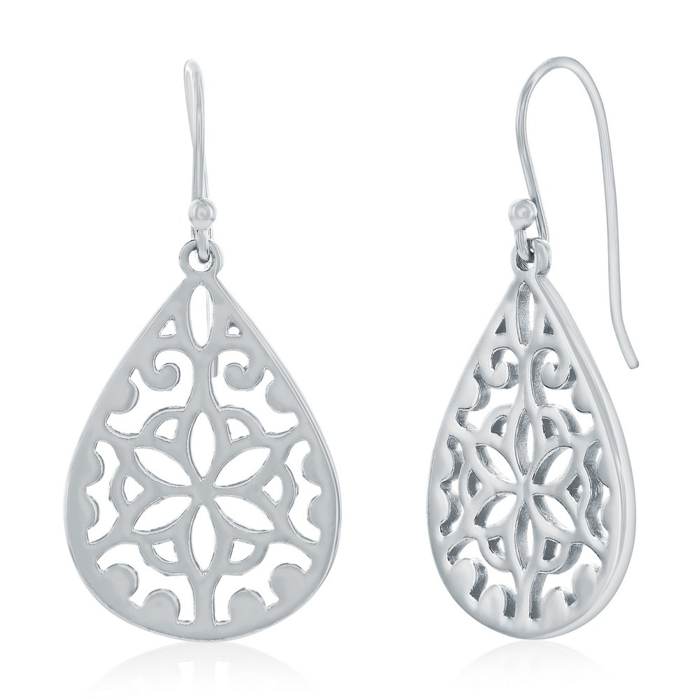 Sterling Silver, Pearshaped Flower Designed Earrings