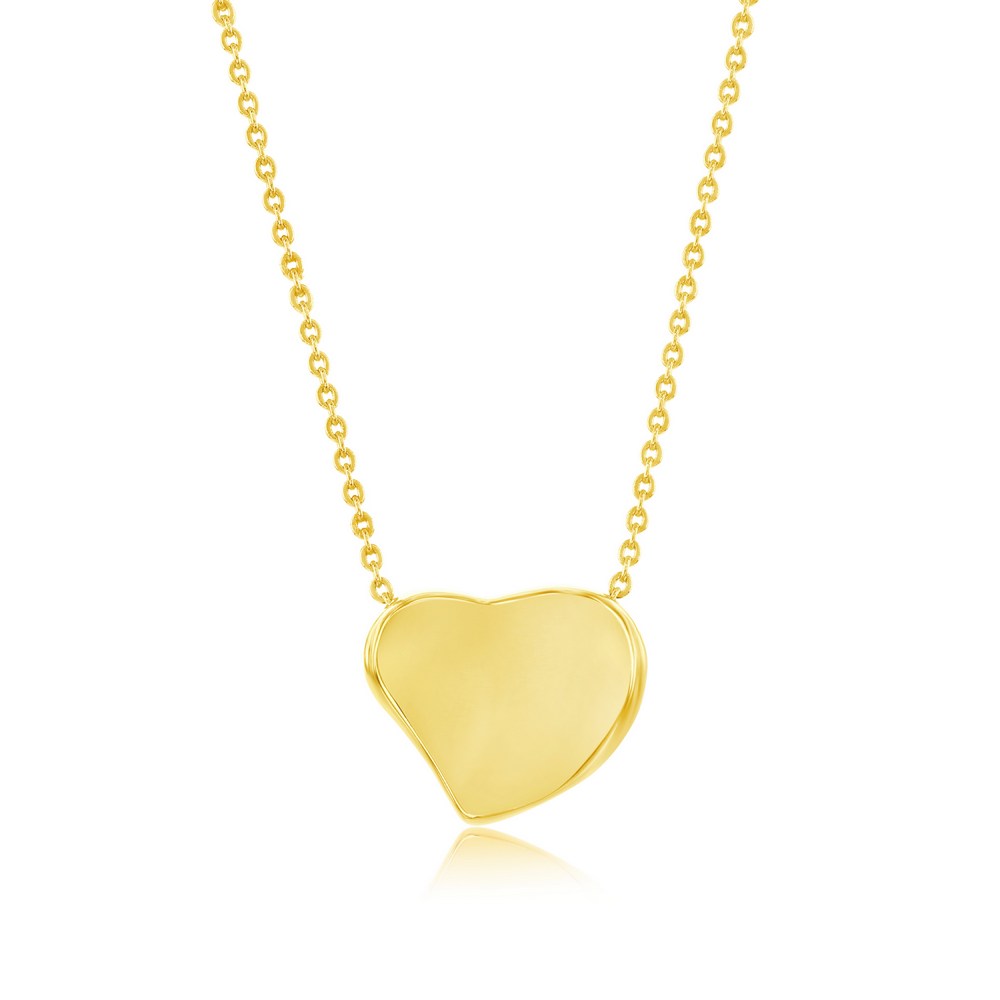 Sterling Silver, Polished Heart Necklace – Gold Plated