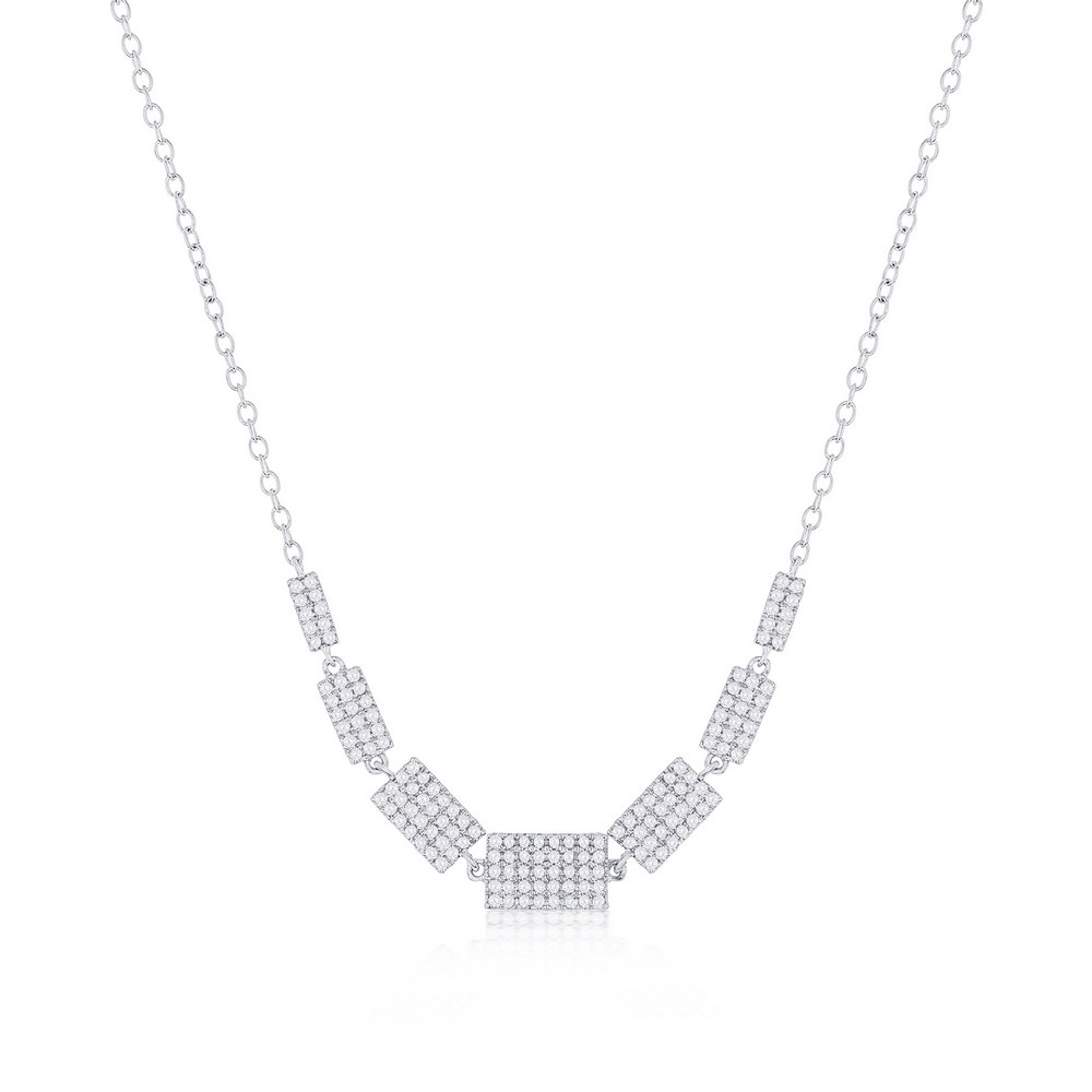 Sterling Silver Rectangle Graduating Diamond Necklace – (152 Stones)