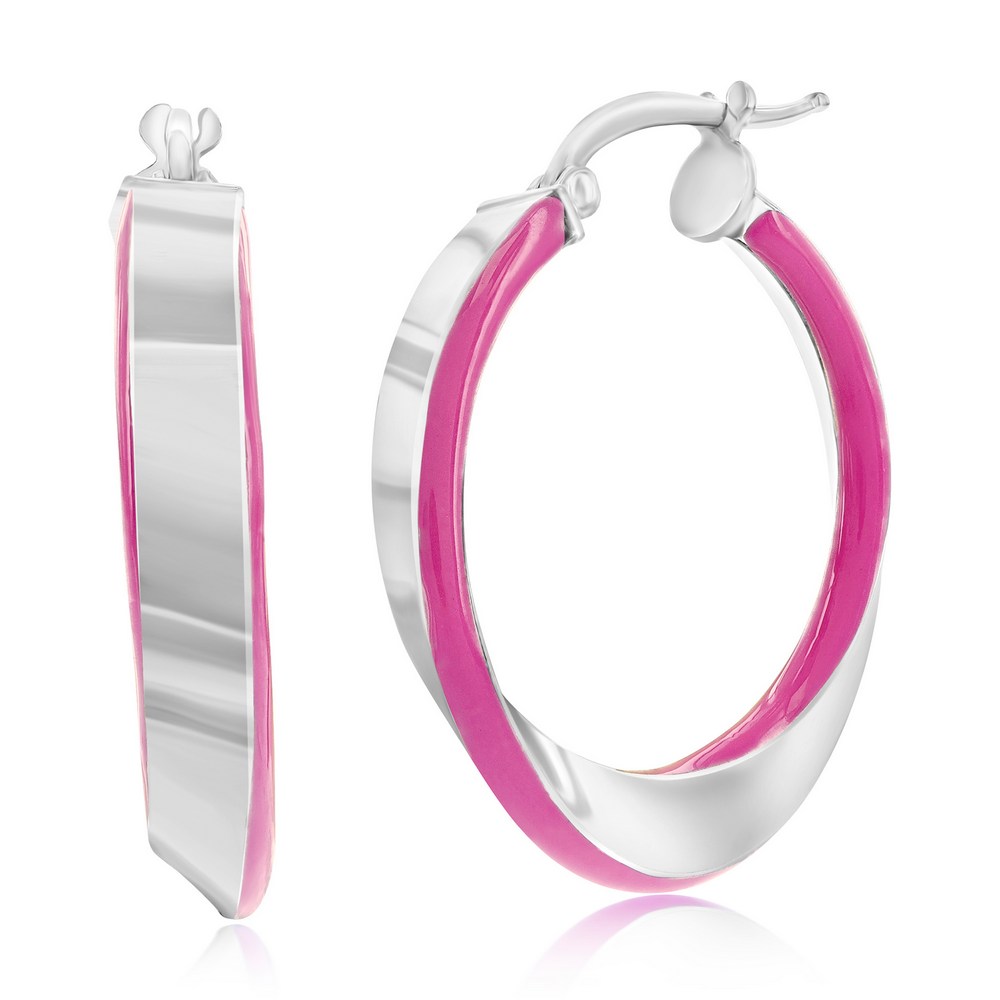 Sterling Silver, Rose Violet Enamel Twist Hoop Earrings