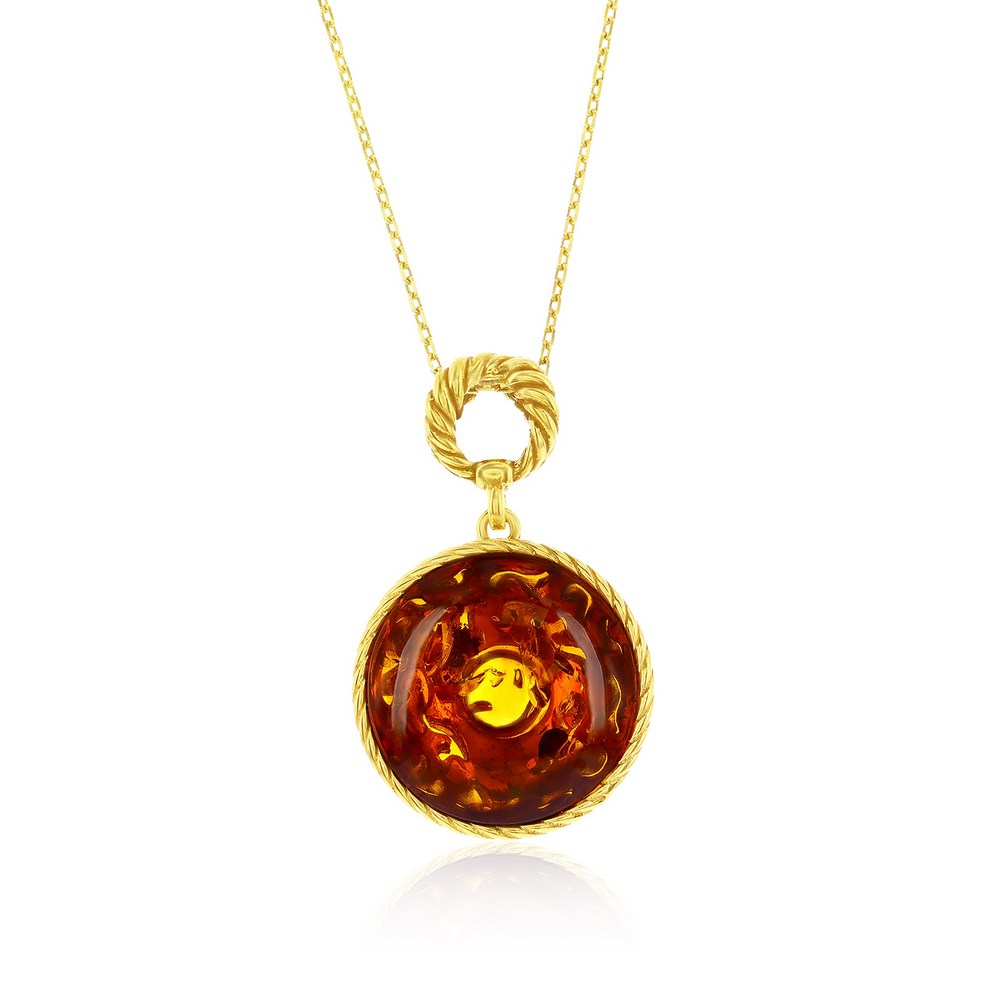 Sterling Silver, Round Amber, Rope Design Outline Pendant – Gold Plated