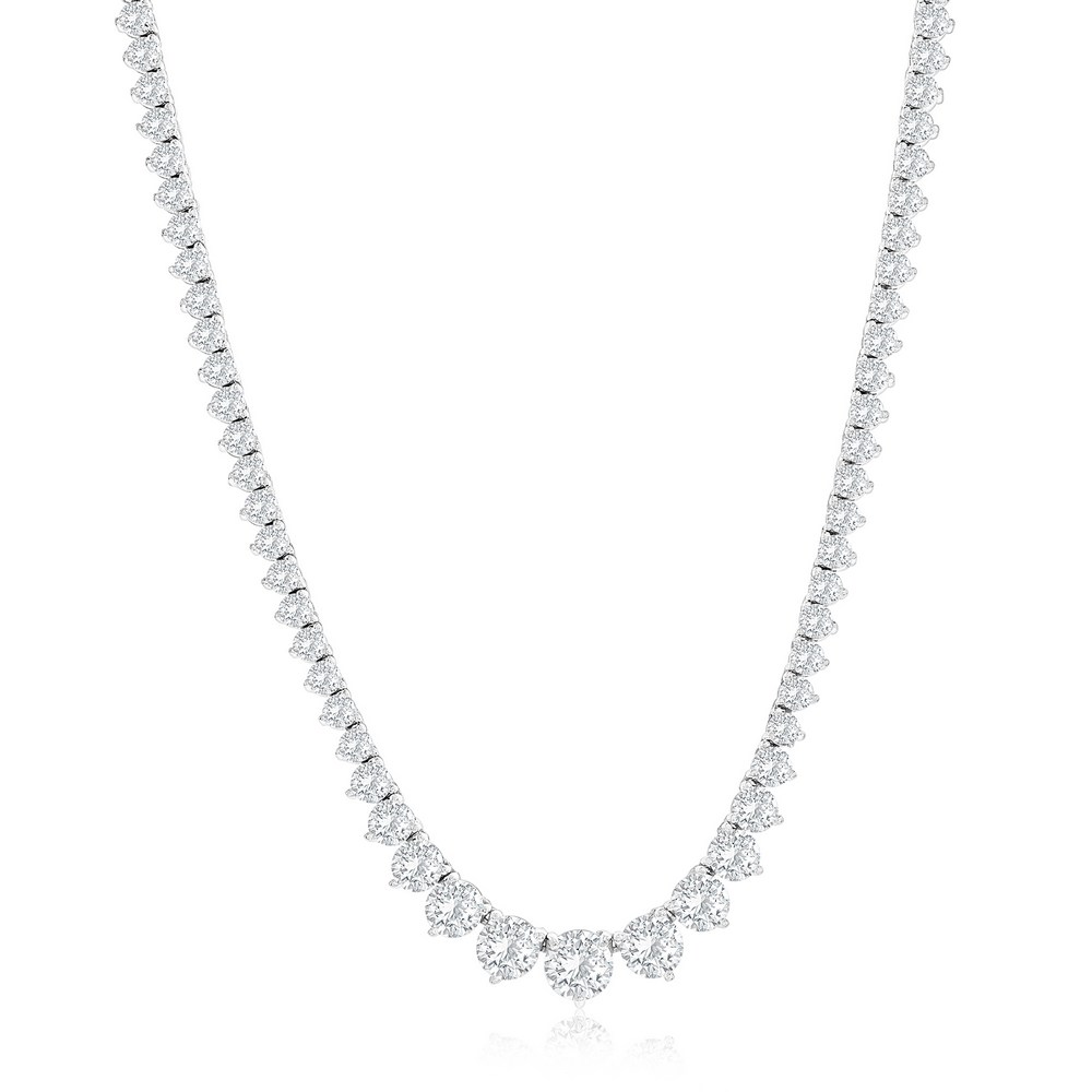 Sterling Silver, Round CZ, 3 Prong Tennis Graduating Necklace
