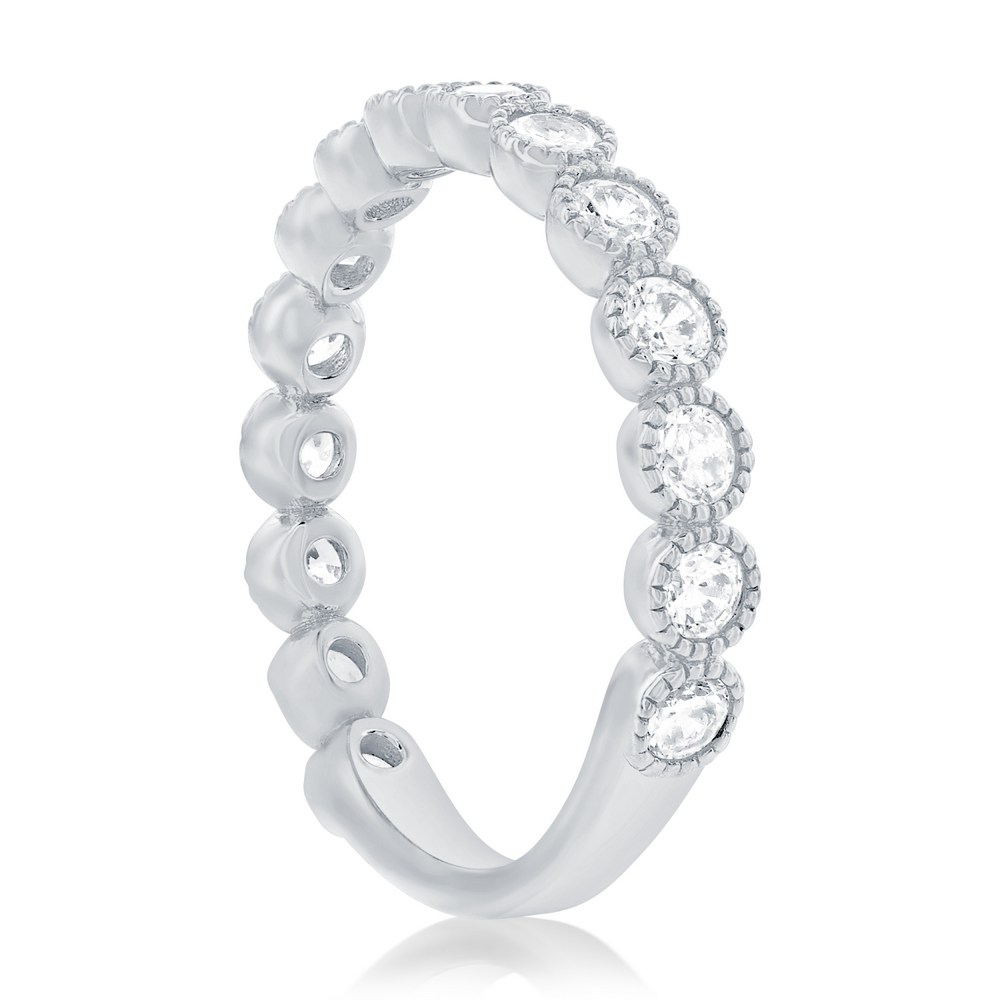 Sterling Silver, Round CZ Beaded Outline Ring