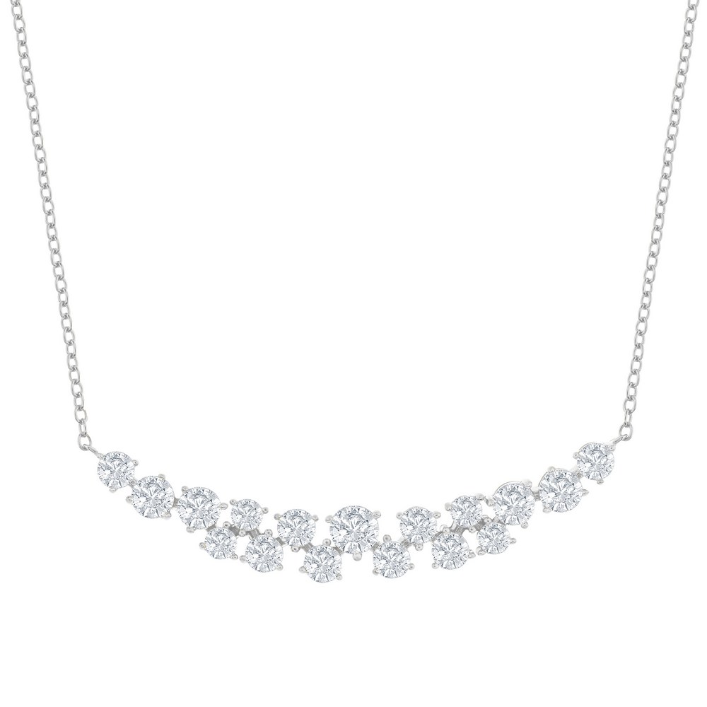 Sterling Silver Round CZ Curved Bar Necklace