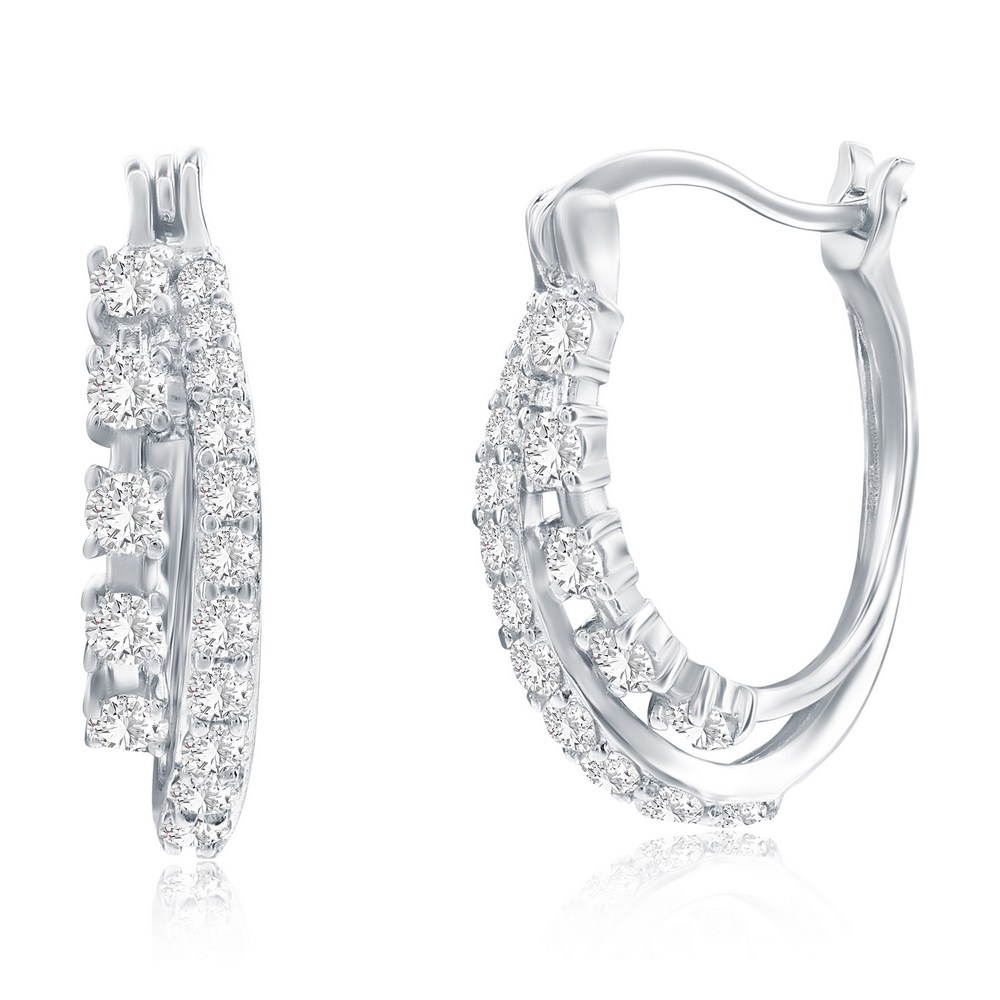 Sterling Silver, Round CZ Overlapping Hoop Earrings