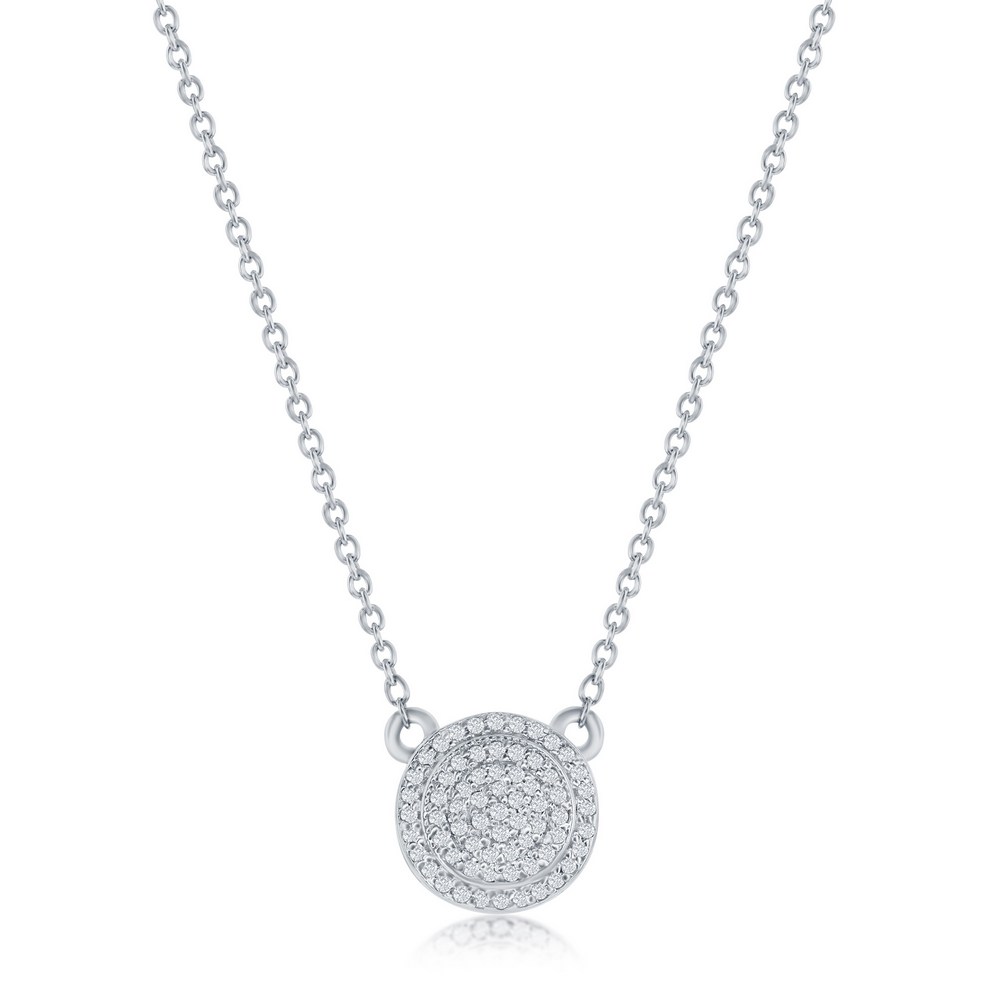 Sterling Silver, Round Halo Diamond Necklace – (67 Stones)