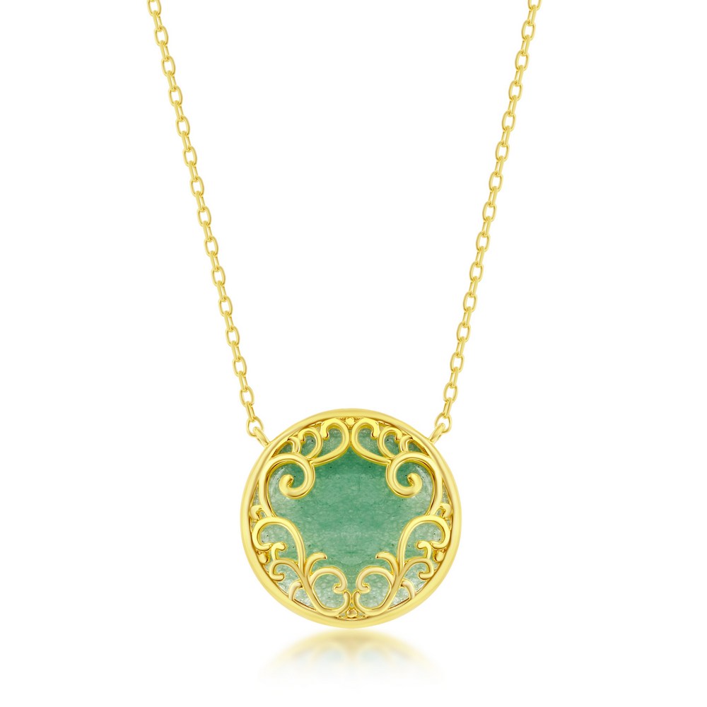 Sterling Silver Round Jade Filigree Design Necklace – Gold Plated