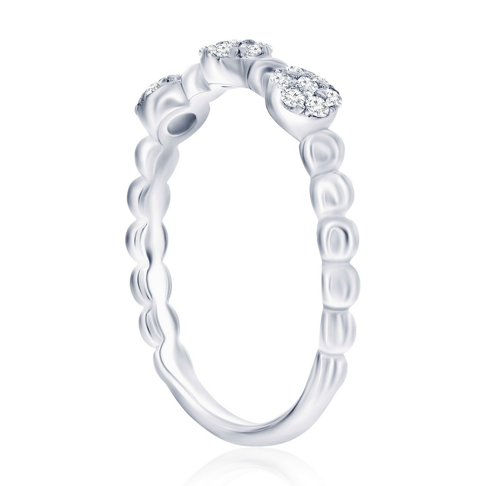 Sterling Silver, Round Pave CZ & Beaded Ring