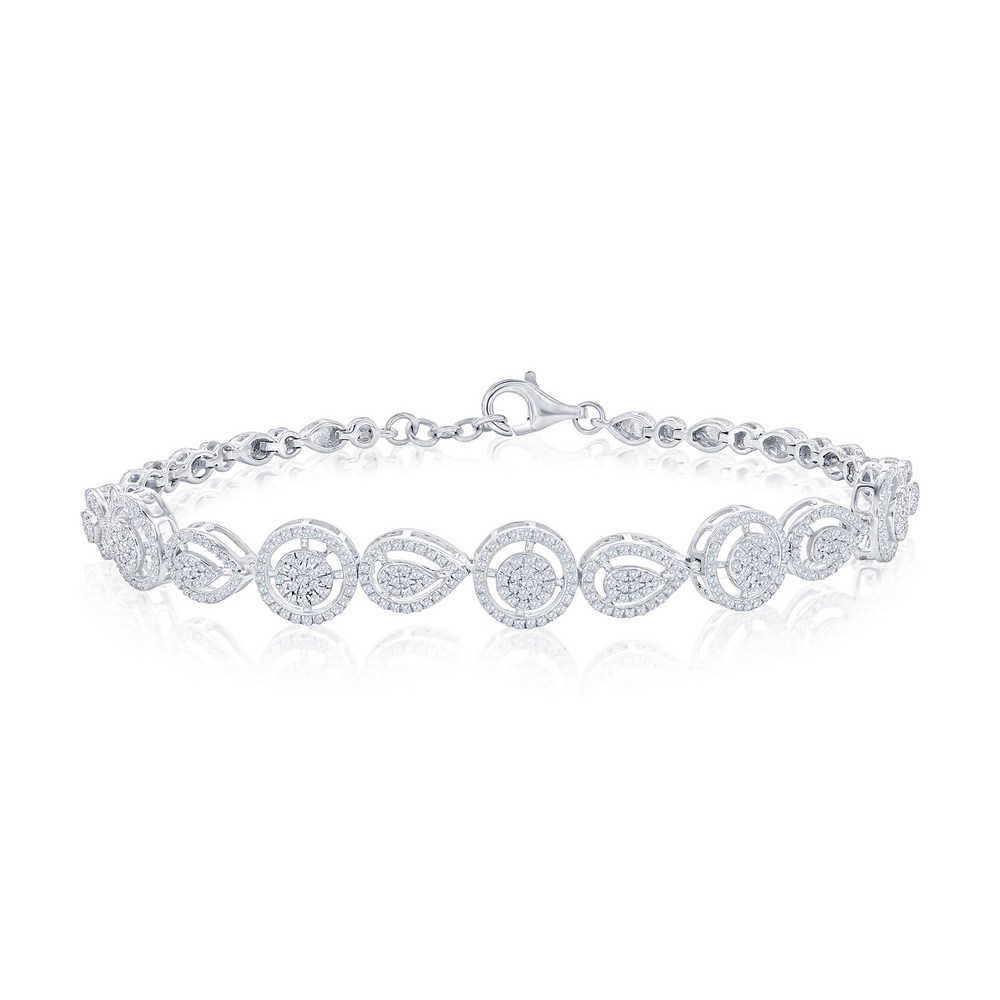 Sterling Silver, Round & Pearshaped Halo Diamond Bracelet – (656 Stones)