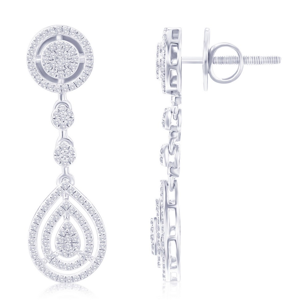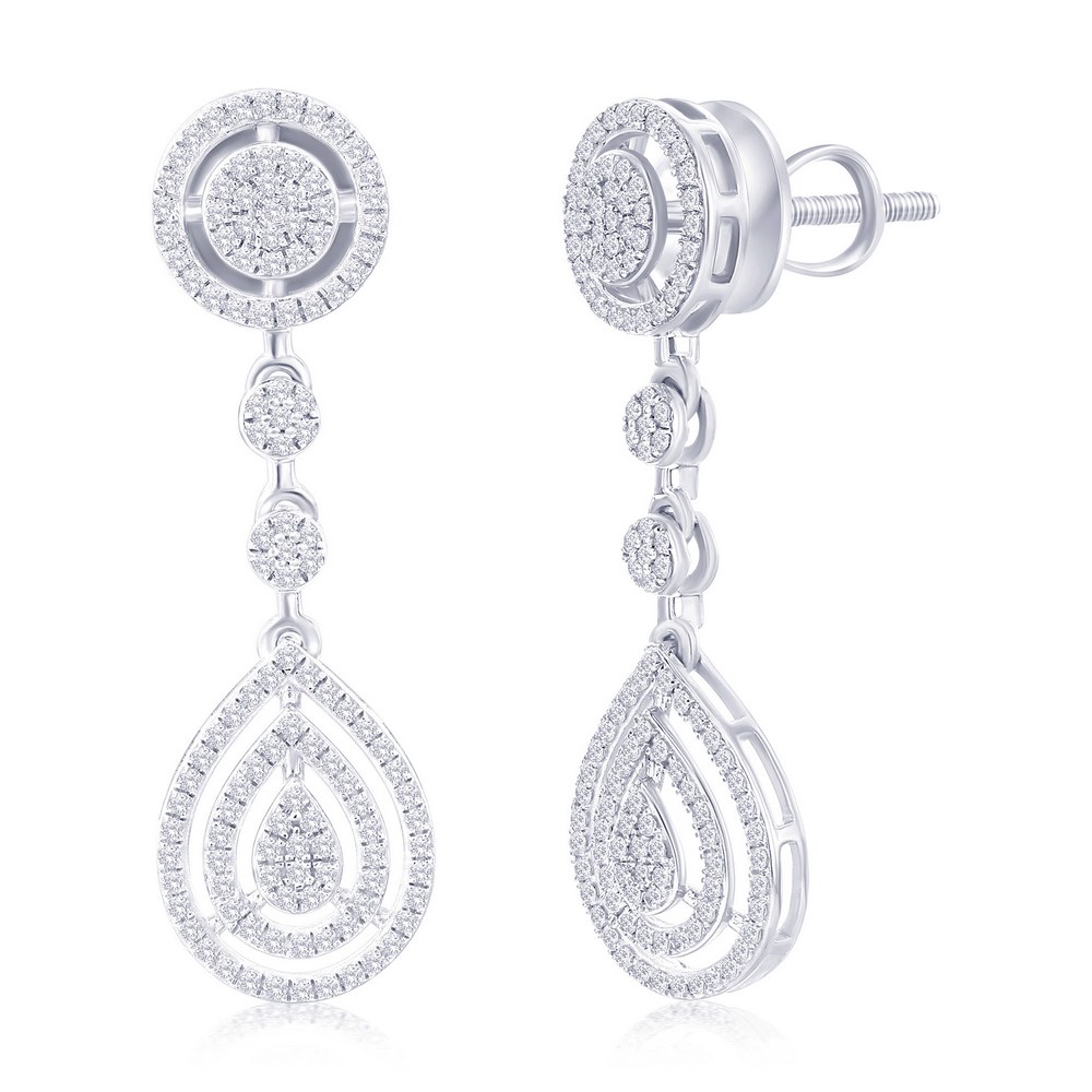 Sterling Silver, Round & Pearshaped Halo Diamond Earrings – (250 Stones)