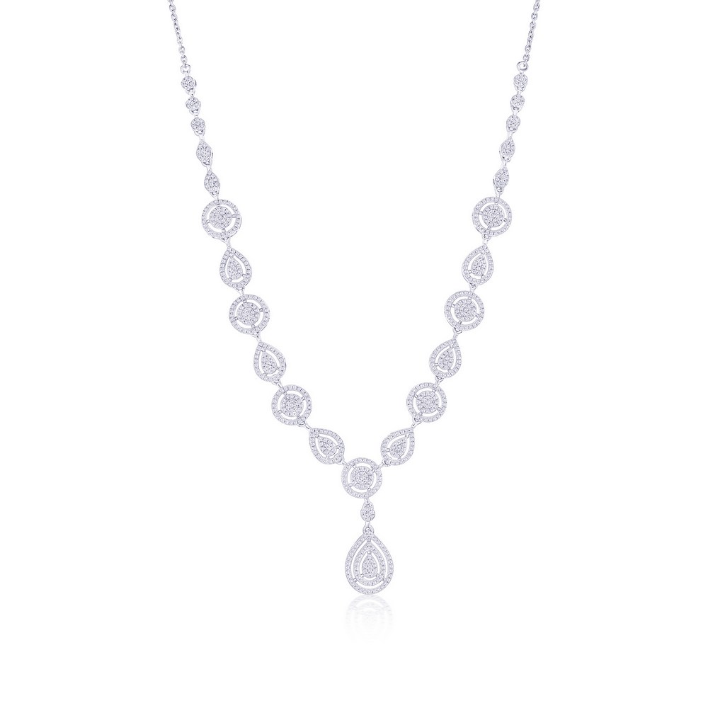 Sterling Silver, Round & Pearshaped Halo Diamond Necklace – (666 Stones)