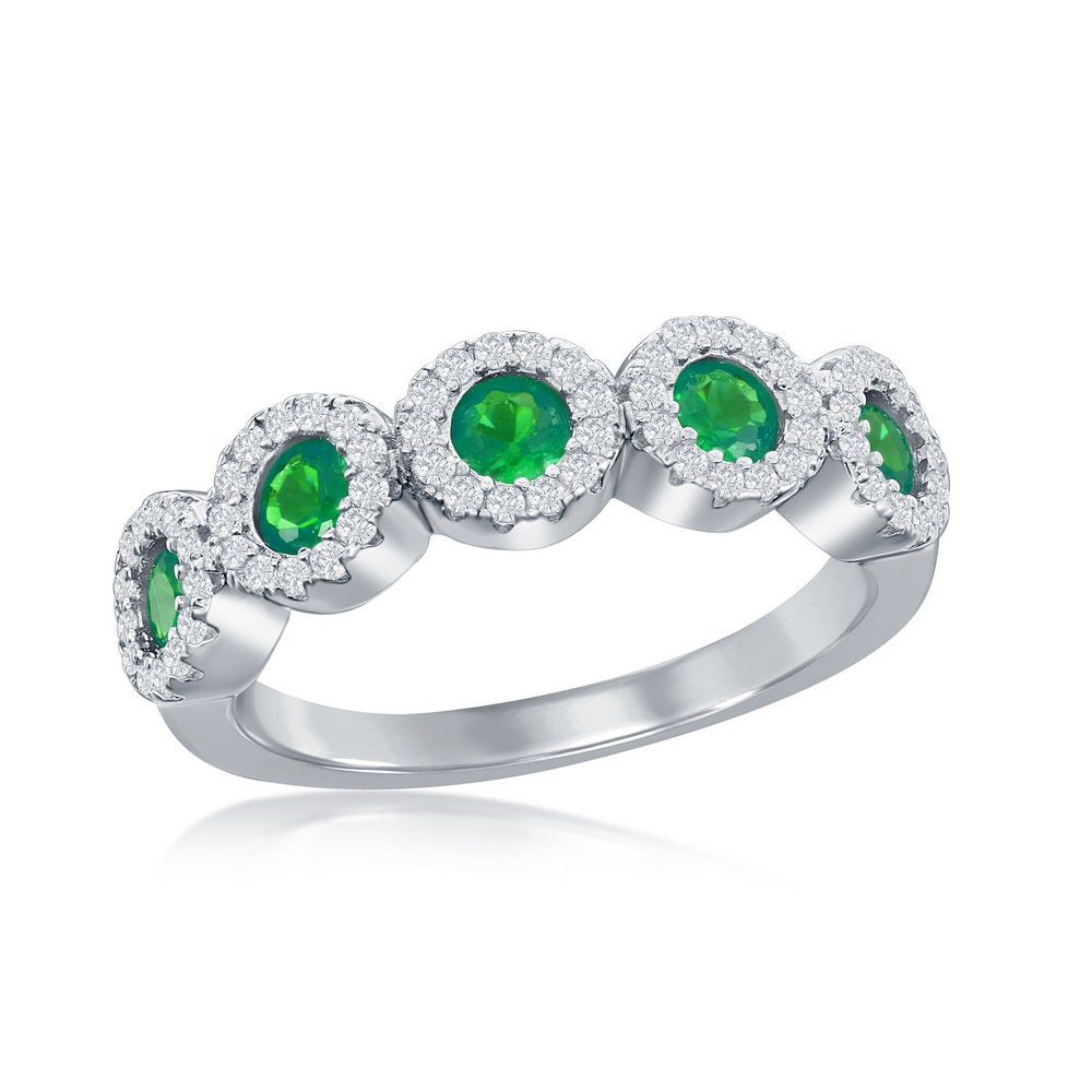 Sterling Silver, Round White & Emerald CZ Half Eternity Ring